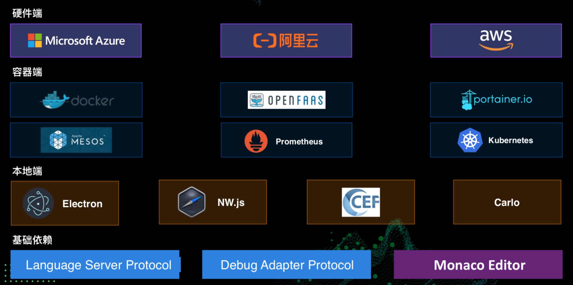 VS Code 提供了开箱即用的产品,借助强大的插件生态实现下载各种增强功能的 VS Code Extensions,例如对各种语言的支持;而 Theia 是一个构建 IDE 和工具的框架,当然 Theia 也提供了多种启动方法,下文将详细介绍。
