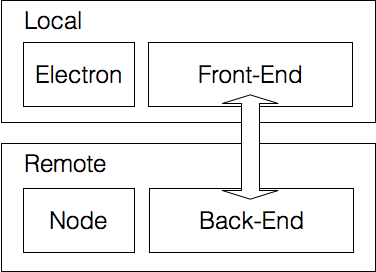 前端部分负责客户端的UI呈现。在浏览器中,它只是简单地在渲染循环中运行,而在 Electron 中,它运行在 Electron BrowserWindow 中,BrowserWindow 是包含 Electron 和 Node.js APIs 的浏览器窗口。因此,任何前端代码都可以把浏览器而不是 Node.js 作为一个运行平台。