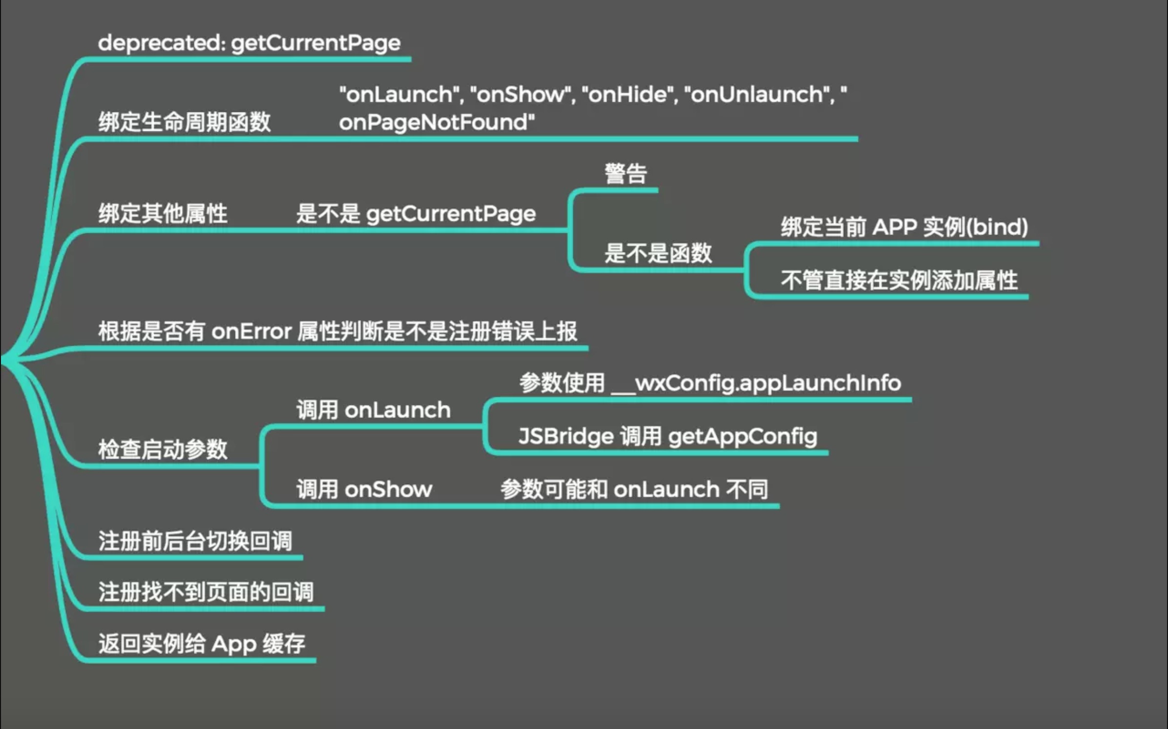 微信小程序 App 和 getApp 的源码混淆了,内部实现不方便我们去追踪,这里我们先不深究,后面参考 wepet、hera 等框架我们再看一下微信小程序早期版本实现。