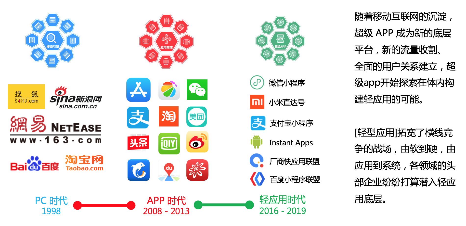 互联网生态演进:超级 APP + 小程序成为「轻应用时代」下的新生态。